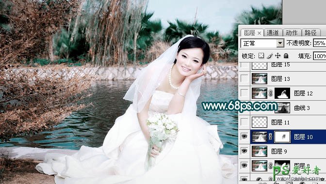 13、新建一个图层,盖印图层。按Ctrl + Shift + U 去色,图层不透明度改为:35%,加上图层蒙版,用黑色画笔把人物脸部擦出来,如下图。