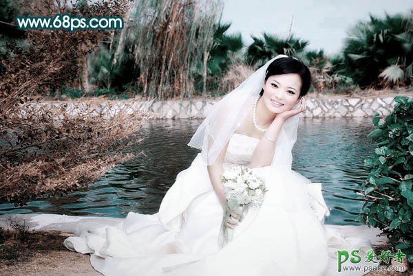 PS婚片调色教程:打造柔情似水的漂亮美女水景婚纱照