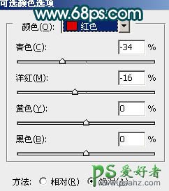 1、打开原图素材,创建可选颜色调整图层,对红,黄,绿,青进行调整,参数设置如图1 - 4,确定后用黑色画笔把人物部分擦出来效果如图5。这一步操作时把画面背景色调艳丽一点。