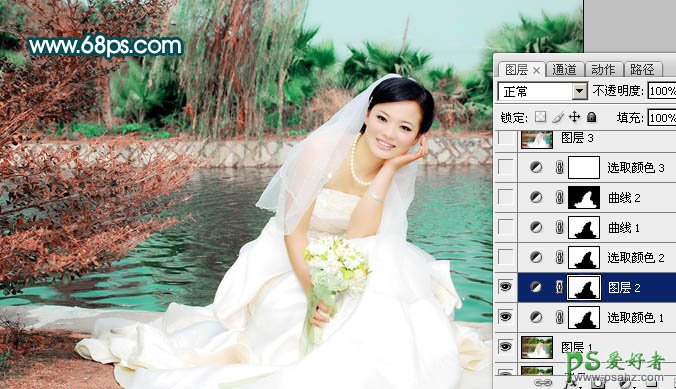PS婚片调色教程:打造柔情似水的漂亮美女水景婚纱照