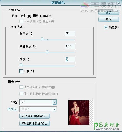 2、执行:图像——调整——匹配颜色,设置见下图。