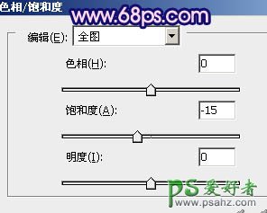 11、创建色相/饱和度调整图层,适当降低全部饱和度,参数设置如图28,效果如图29。