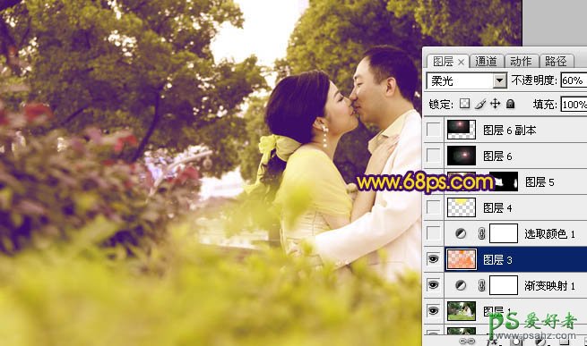 2、按Ctrl + Alt + ~ 调出高光选区,新建一个图层填充橙色:#F8850D,图层混合模式改为“柔光”,图层不透明度改为:60%,如下图。