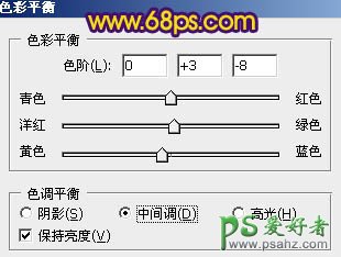 9、创建色彩平衡调整图层,参数设置如图16,效果如图17。
