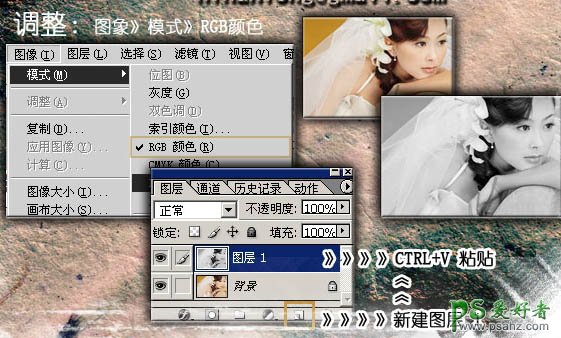 3、回到图层面板,新建一个图层,按Ctrl + V 粘贴,把刚才复制的明度通道复制进来,这样我们就得到了一个黑白的人物图层。确定后再选择菜单:图像 > 模式 > RGB颜色,在弹出的对话框选择不合拼。