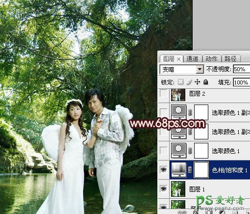 PS调色教程:给外景天使情侣婚片调出黄褐色效果