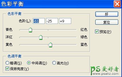 4、创建色彩平衡调整图层,对中间调,暗调,高光进行调整,参数设置如下图。
