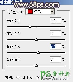 10、创建可选颜色调整图层,对红色进行调整,参数设置如图22,效果如图23。