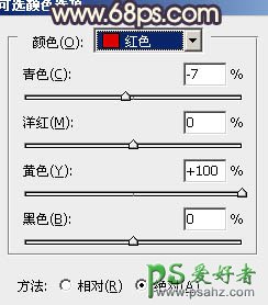 4、创建可选颜色调整图层,对红色进行调整,参数设置如图11,效果如图12。