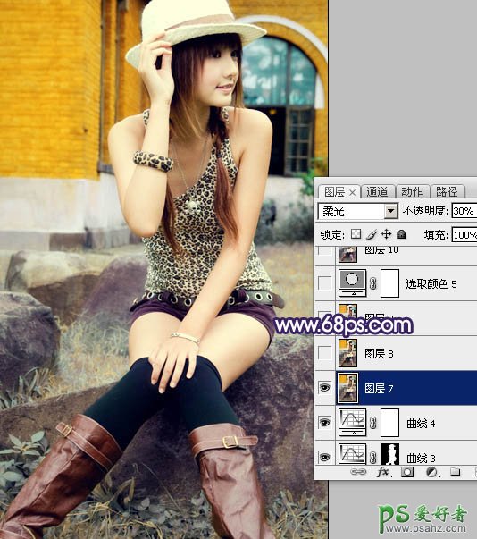 14、在图层的最上面新建一个图层,盖印图层。执行:滤镜 > 模糊 > 高斯模糊,数值为5,确定后把图层混合模式改为“柔光”,图层不透明度改为:30%,如下图。