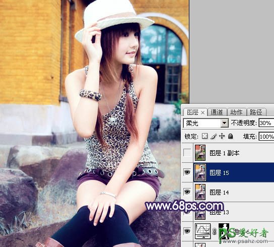 20、新建一个图层盖印图层,执行:滤镜 > 模糊 > 高斯模糊,数值为5,确定后把图层混合模式改为“柔光”,图层不透明度改为:30%,如下图。
