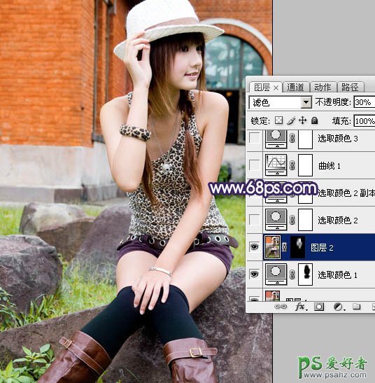 2、新建一个图层,按Ctrl + Alt + Shift + E 盖印图层,图层混合模式改为“滤色”,图层不透明度改为:30%,按住Alt 键添加图层蒙版,用白色画笔把人物脸部擦出来,效果如下图。
