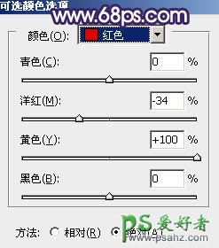 6、在抠出的人物图层下面创建可选颜色调整图层,对红色进行调整,参数设置如图13,效果如图14。