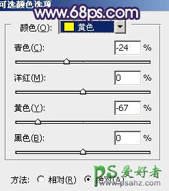 7、用套索工具勾出图15所示的选区,创建可选颜色调整图层,对黄,绿,青进行调整,参数设置如图16 - 18,效果如图19。