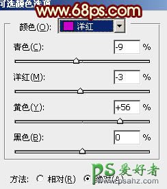 1、打开原图素材,创建可选颜色调整图层,稍微调整一下背景及人物衣服色彩,对黄及洋红进行调整,参数设置如图1,2,效果如图3。
