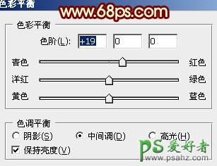 9、用钢笔勾出人物嘴唇部分的选区,如图16,按Ctrl + Alt + D 羽化1个像素后创建色彩平衡调整图层,参数设置如图17,简单的把嘴唇调红一点,效果如图18。