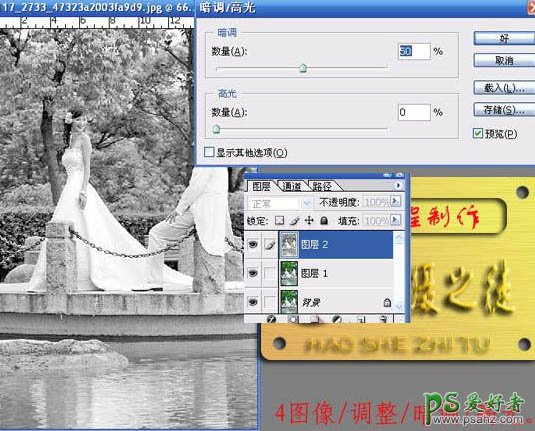 4、对图层2执行:图像 > 调整 > 暗调/高光,暗调数量为:50%,高光数量为:0%,如下图。