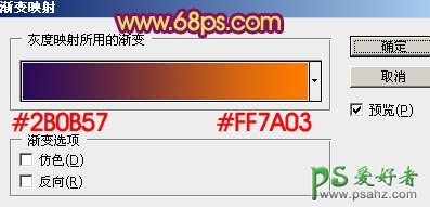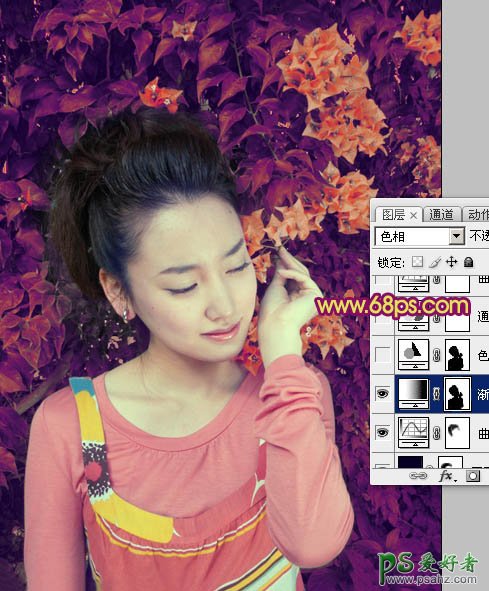 7、创建渐变映射调整图层,颜色设置如图19,确定后把图层混合模式改为“色相”,用黑色画笔把人物部分擦出来,效果如图20。