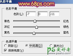 8、调出当前图层蒙版选区,创建色彩平衡调整图层,参数设置如图21,对中间调调整,效果如图22。