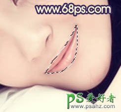 11、用钢笔工具把人物嘴唇部分抠出来,如图20。转为选区后按Ctrl + Alt + D 羽化1个像素后创建色彩平衡调整图层,参数设置如图21,效果如图22。