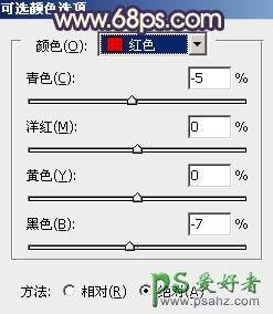 2、创建可选颜色调整图层,对红色进行调整,稍微把人物肤色调红一点,参数设置如图3,效果如图4。