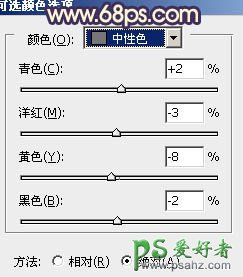 7、创建可选颜色调整图层,对中性色进行调整,参数设置如图15,确定后把图层不透明度改为:30%,效果如图16。