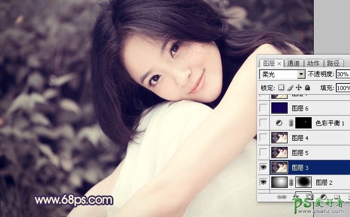 9、新建一个图层,按Ctrl + Alt + Shift + E 盖印图层。执行:滤镜 > 模糊 > 高斯模糊,数值为5,确定后把图层混合模式改为“柔光”,图层不透明度改为:30%,效果如下图。