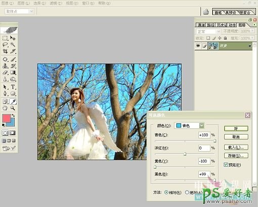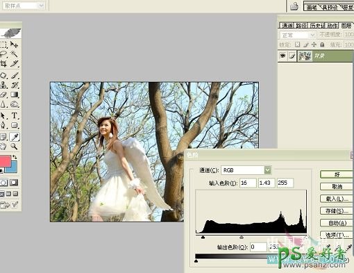 PS调色教程:给森林中的天使MM婚纱照调出梦幻效果