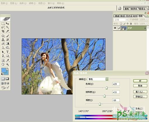PS调色教程:给森林中的天使MM婚纱照调出梦幻效果