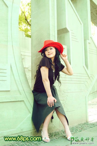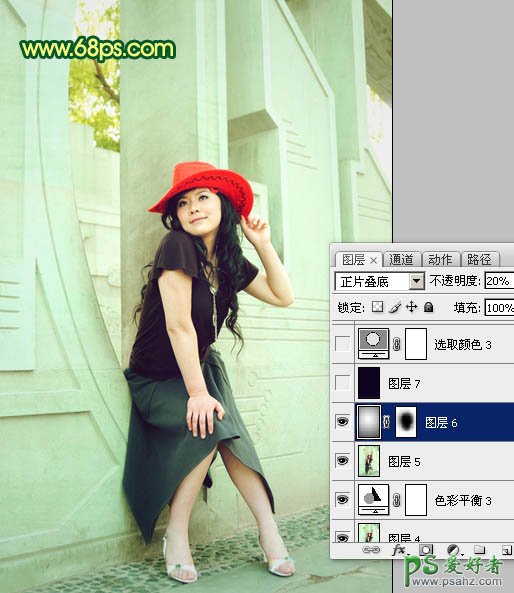 10、新建一个图层,选择渐变工具,颜色设置为黑白径向渐变。由中心向四周拉出径向渐变。确定后把图层混合模式改为“正片叠底”,图层不透明度改为:20%,加上图层蒙版,用黑色画笔把中间部分擦出来,如下图。