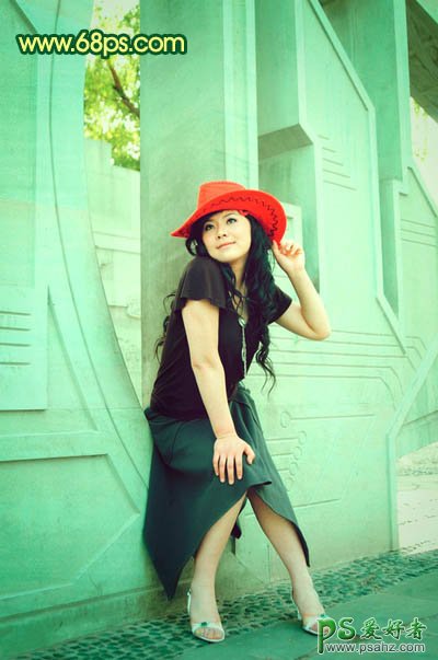 PS调色教程:给外景美女图片调出甜美的青绿色