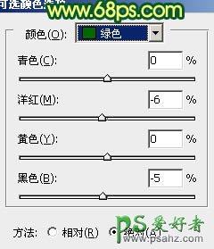 16、创建可选颜色调整图层,对绿色进行调整,参数设置如图30,效果如图31。