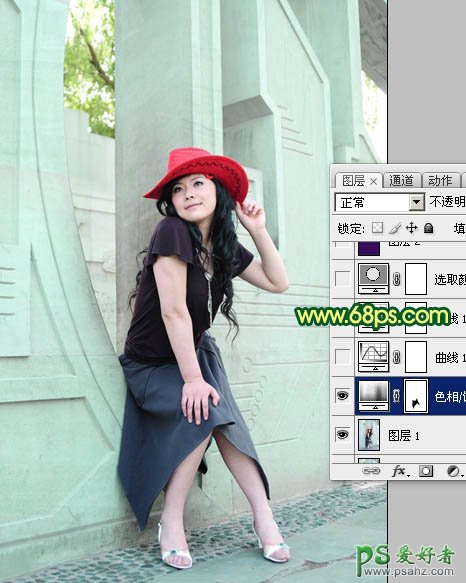 PS调色教程:给外景美女图片调出甜美的青绿色