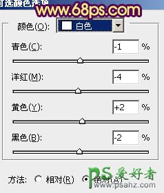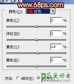 7、选择菜单:图像 > 调整 > 可选颜色,对红,黄,白进行调整,参数设置如图22 - 24,效果如图25。