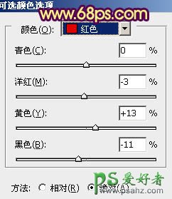 2、创建可选颜色调整图层,对红,黄,白进行调整,参数设置如图6 - 7,效果如图8。