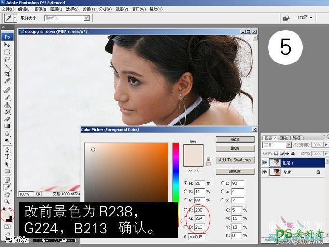 5、把前景颜色设置为:#eee0d5。