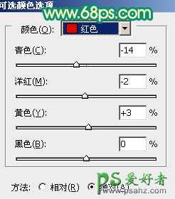 16、创建可选颜色调整图层,对红色进行调整,稍微把人物肤色调红润一点,效果如图36。