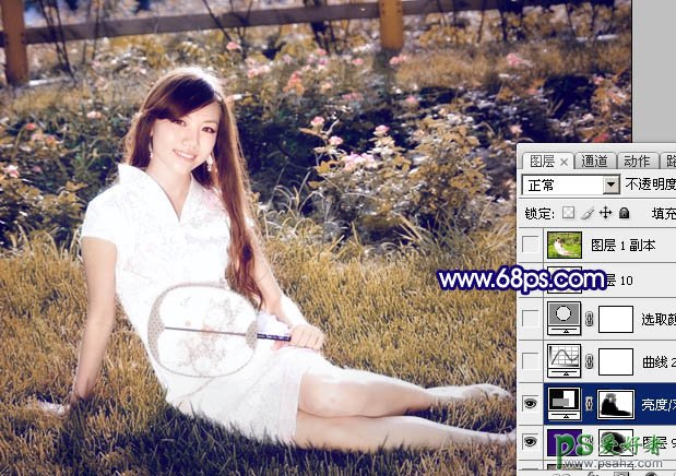 12、创建亮度/对比度调整图层,参数设置如图20,确定后用黑色画笔把人物部分擦出来,效果如图21。
