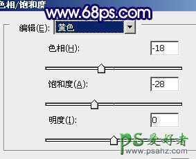 1、打开原图素材,创建色相/饱和度调整图层,选择黄色,用吸管点背景部分的草地,吸取颜色,然后适当调整,参数设置如图1,效果如图2。