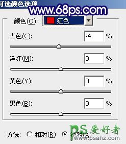 3、创建可选颜色调整图层,对红,黄,中性色进行调整,参数设置如图4 - 6,确定后用黑色画笔把人物部分擦出来,效果如图7。