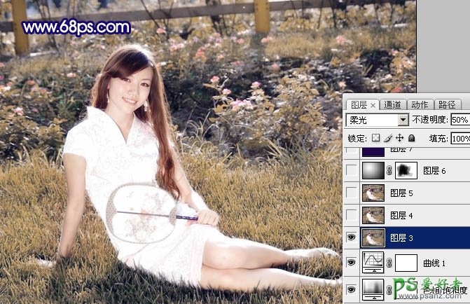 7、新建一个图层,按Ctrl + Alt + Shift + E 盖印图层,执行:滤镜 > 模糊 > 高斯模糊,数值为5,确定后把图层混合模式改为“柔光”,图层不透明度改为:50%,效果如下图。