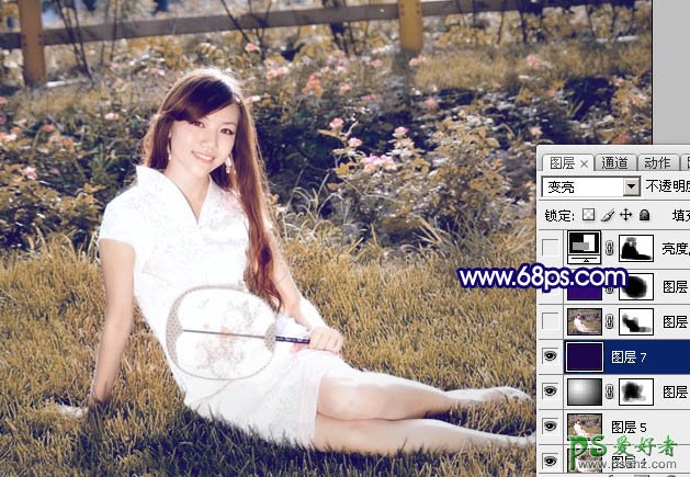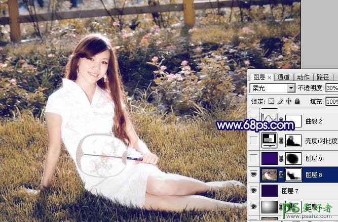 10、新建一个图层,盖印图层,执行:滤镜 > 模糊 > 高斯模糊,数值为5,确定后把图层混合模式改为“柔光”,图层不透明度改为:30%,加上图层蒙版,用黑色画笔把人物部分擦出来,如下图。