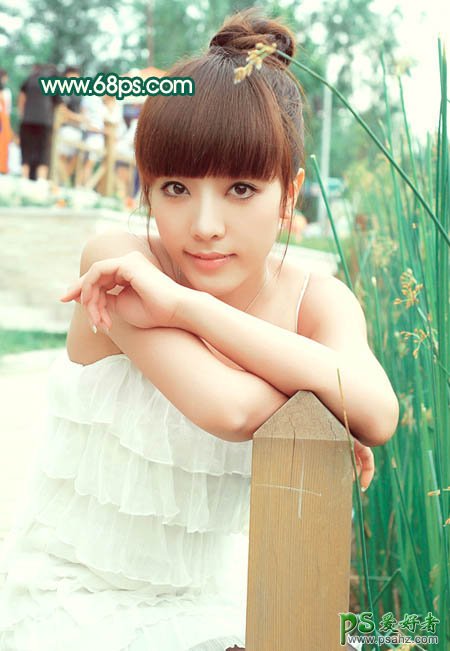 PS调色教程:给可爱的大眼妹妹艺术照调出柔美的粉青色