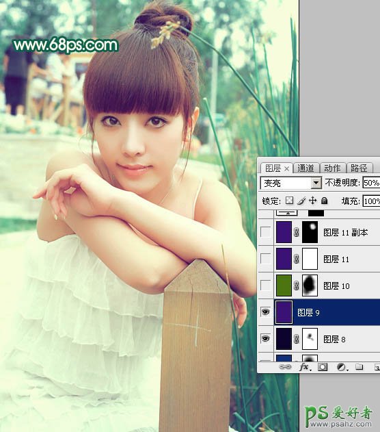 11、新建一个图层,填充颜色:#3B1175,图层混合模式改为“变亮”,不透明度改为:50%,效果如下图。