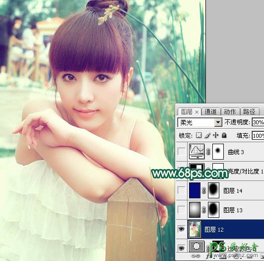 15、新建一个图层,盖印图层。执行:滤镜 > 模糊 > 高斯模糊,数值为5,确定后把图层混合模式改为“柔光”,不透明度改为:30%,效果如下图。