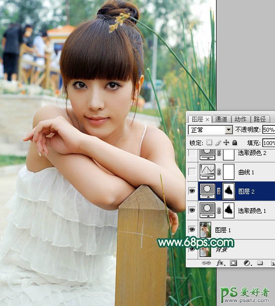PS调色教程:给可爱的大眼妹妹艺术照调出柔美的粉青色