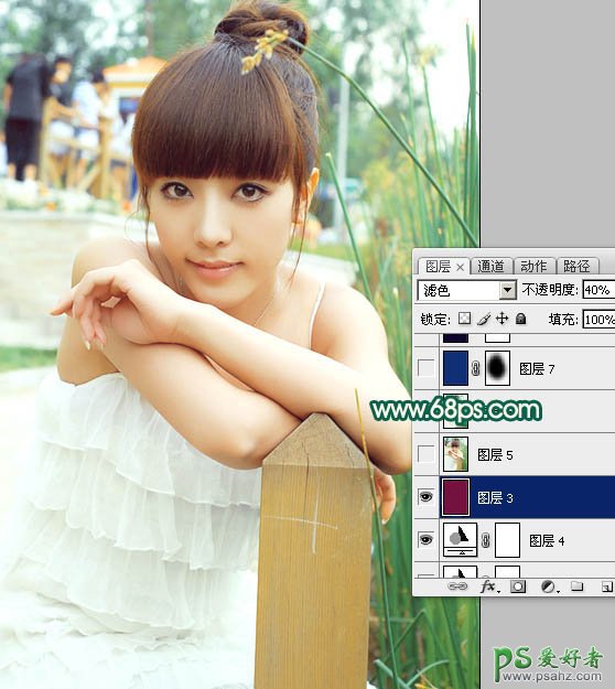 PS调色教程:给可爱的大眼妹妹艺术照调出柔美的粉青色