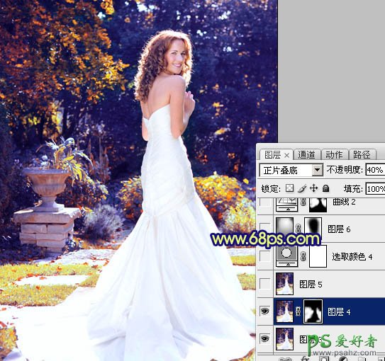 8、新建一个图层,按Ctrl + Alt + Shift + E 盖印图层。图层混合模式改为“正片叠底”,不透明度改为:40%,按住Alt 键添加图层蒙版,用白色画笔把一些较亮的部分擦出来,效果如图26。