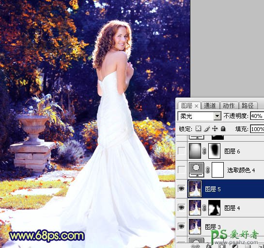 9、新建一个图层,盖印图层。执行:滤镜 > 模糊 > 高斯模糊,数值为5,确定后把图层混合模式改为“柔光”,不透明度改为:40%。效果如下图。
