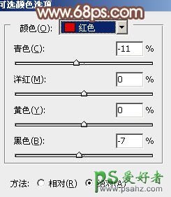 12、创建可选颜色调整图层,对红,黄进行调整,参数设置如图26,27,效果如图28。